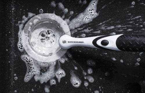 Verwenden Sie den SonicScrubber ohne Flüssigkeit oder Reinigungsmittel, um möglichst viel Schmutz und Ablagerungen zu entfernen. Wir empfehlen, dies im Freien auf einer harten Oberfläche oder auf Zeitungen oder Handtüchern zu tun, um das Aufsaugen von Schmutz zu erleichtern.